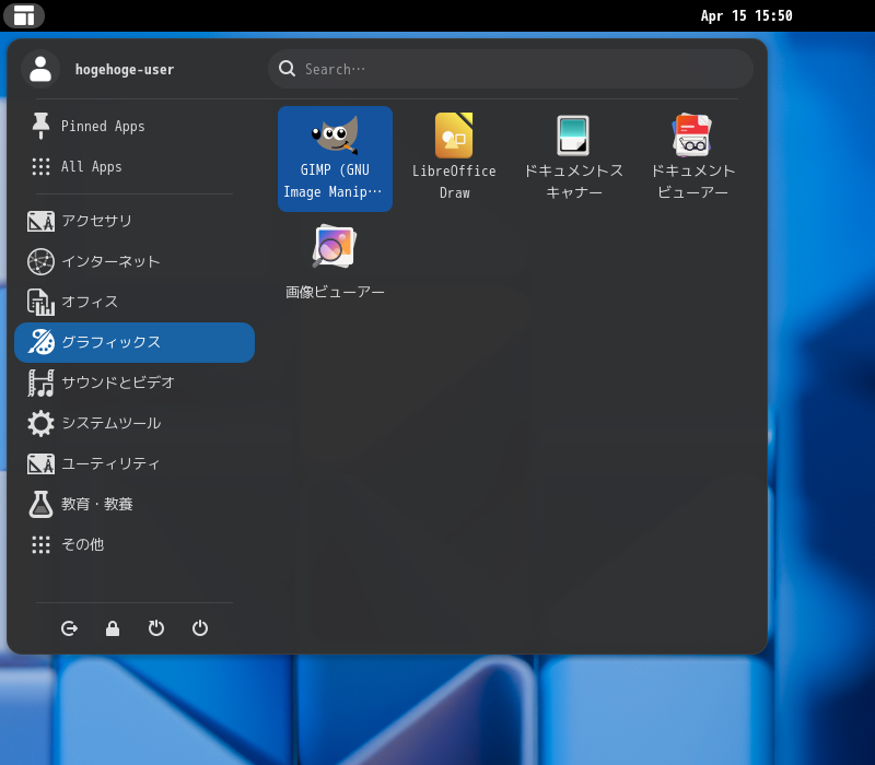 Alpine Linux - 3.23.3 - GNOME - 画像編集ソフト GIMP