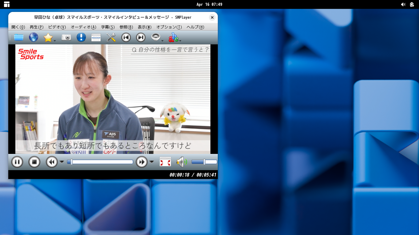 マルチメディアプレイヤーとして、「SMPlayer」を使用します。