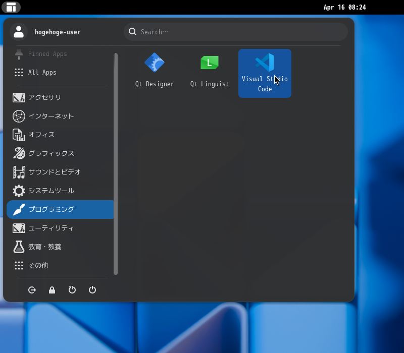 「スタート」→「プログラミング」→「Visual Studio Code」