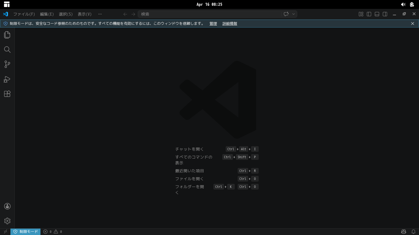 日本語化後、再起動直後の状態です。