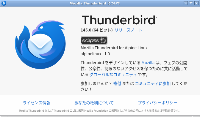Alpine Linux - 3.23.3 - LXQt - メールクライアント Thunderbird