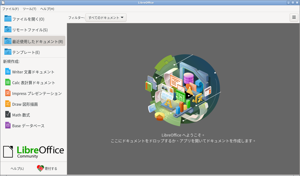 操作方法等については「オフィススィート LibreOffice」をご参照ください。