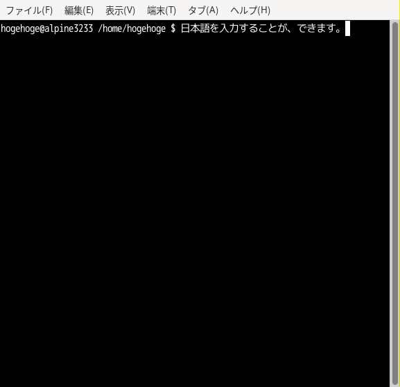 「xterm」で日本語を出力できなかったので、「xfce4-terminal」をインストールして確認しました。