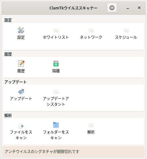 「ClamTk」は、「GUI」で操作するアンチウィルスソフトです。