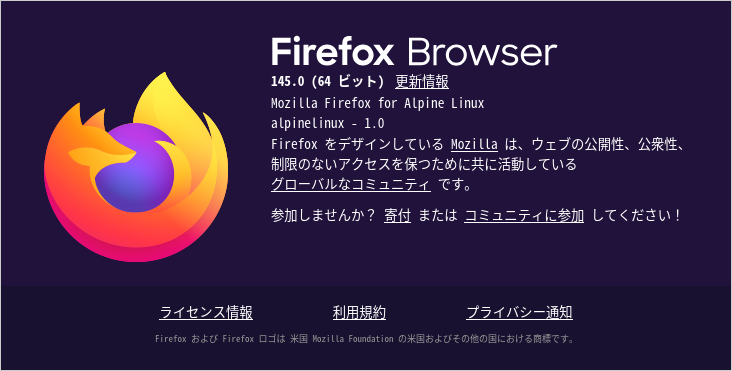 Alpine Linux - 3.23.3 - cwm - ブラウザ Firefox