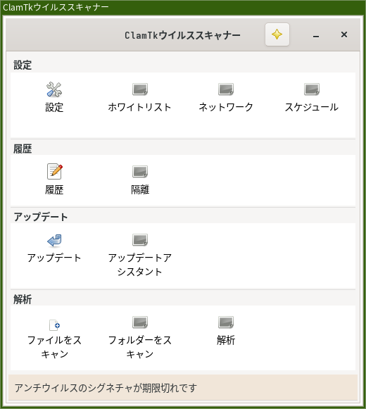 「ClamTk」は、「GUI」で操作するアンチウィルスソフトです。