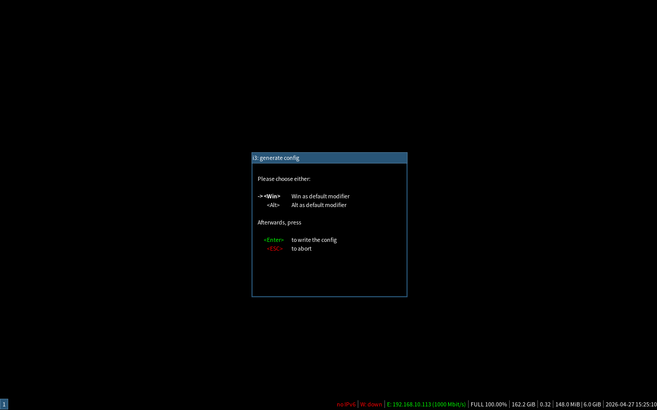 が存在しないため、初回ログイン時に「i3-config-wizard」が起動します。