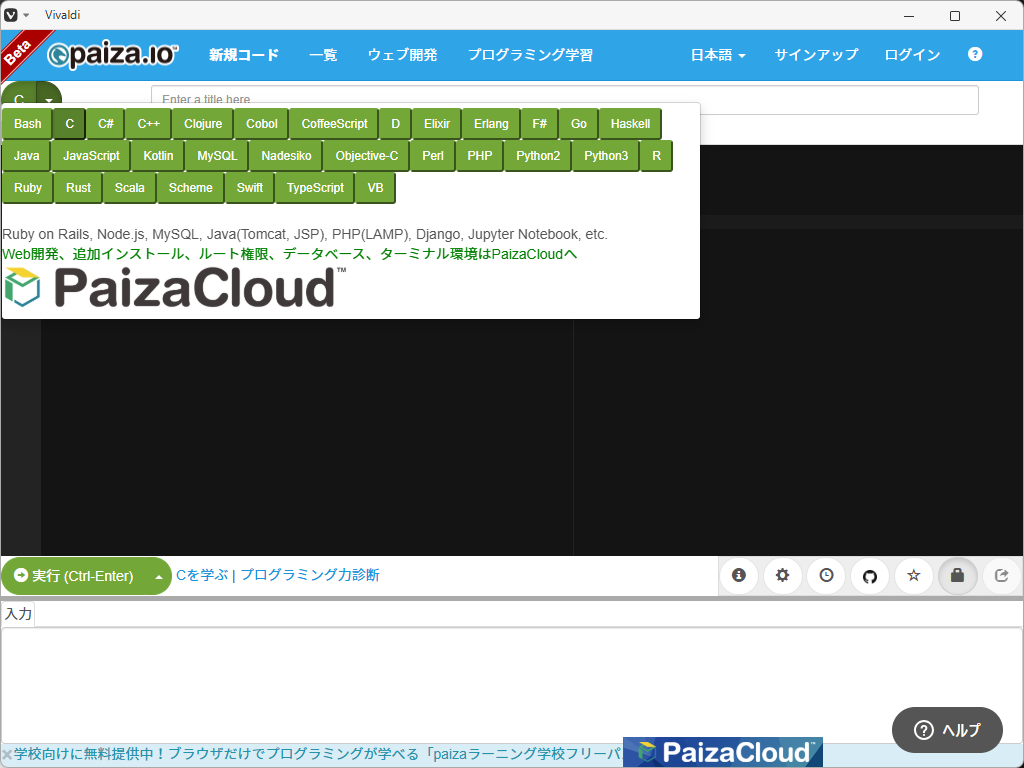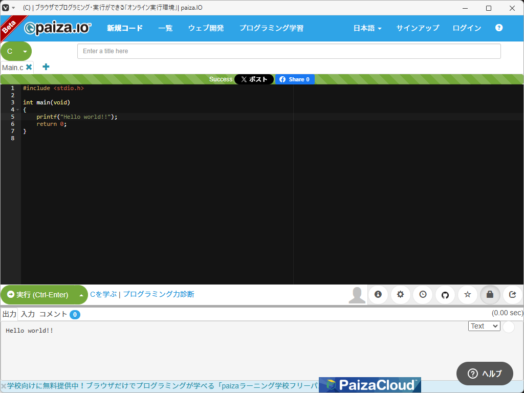 Ctrl+Enter で、コンパイル・実行できるようです。