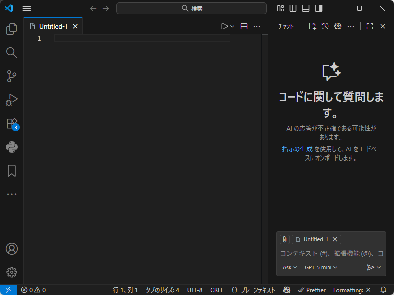 少なくとも、バージョン「1.105.1」から、「Visual Studio Code」には、「copilot」がバンドルされています。