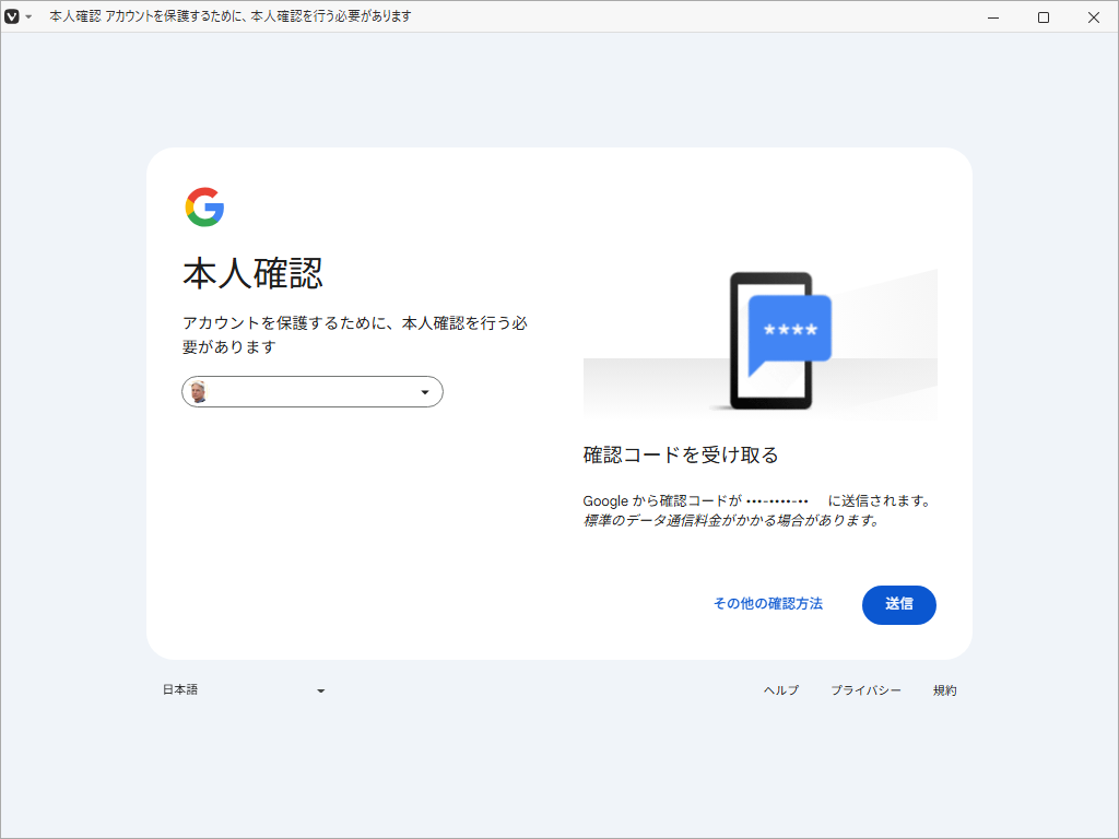 電話番号を登録していれば、確認コードを送る設定になっているはずです。