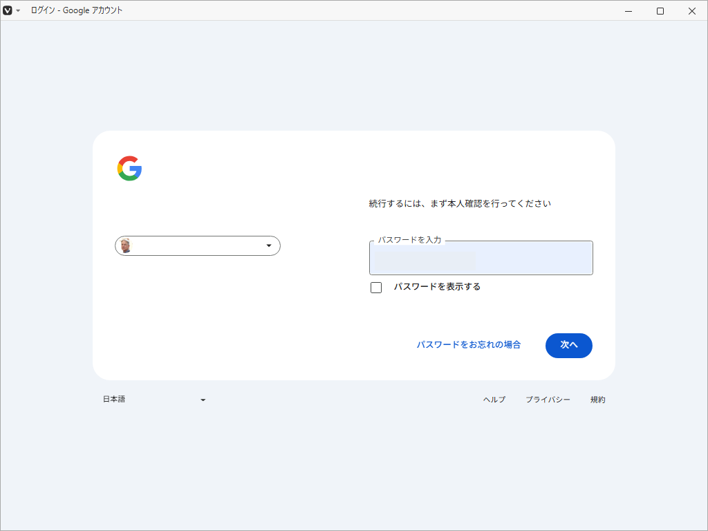 ここで使うパスワードは、デフォルトのパスワードでは「NG」になるので、前項で設定した、アプリパスワードを用いることになります。