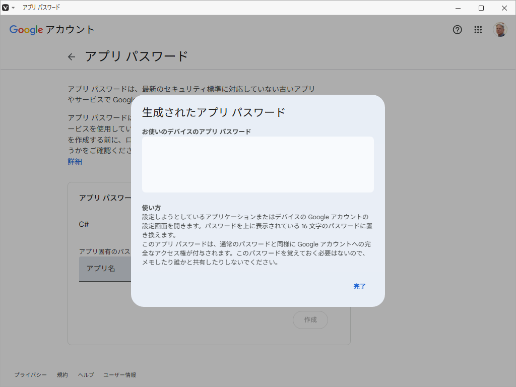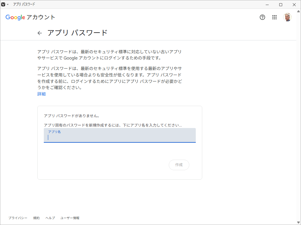 以前は、アカウント設定の画面から、アプリパスワード設定の画面へ移行できたのですが、いまはそのリンクが存在しません。