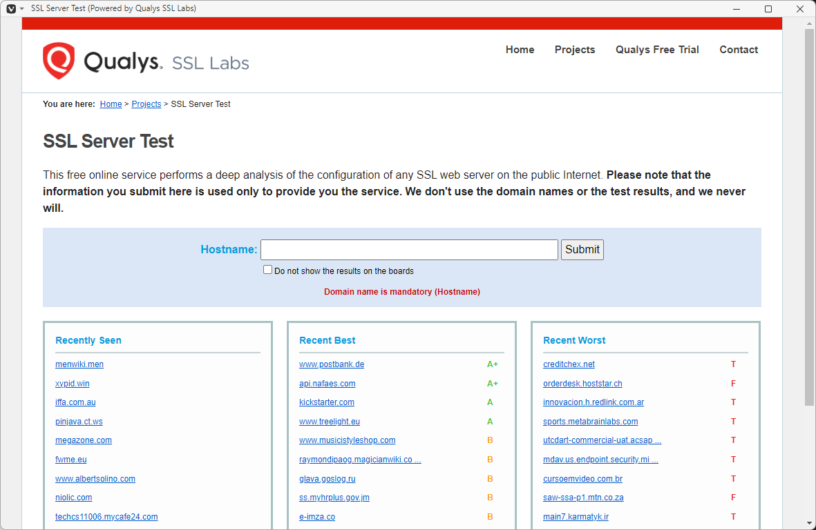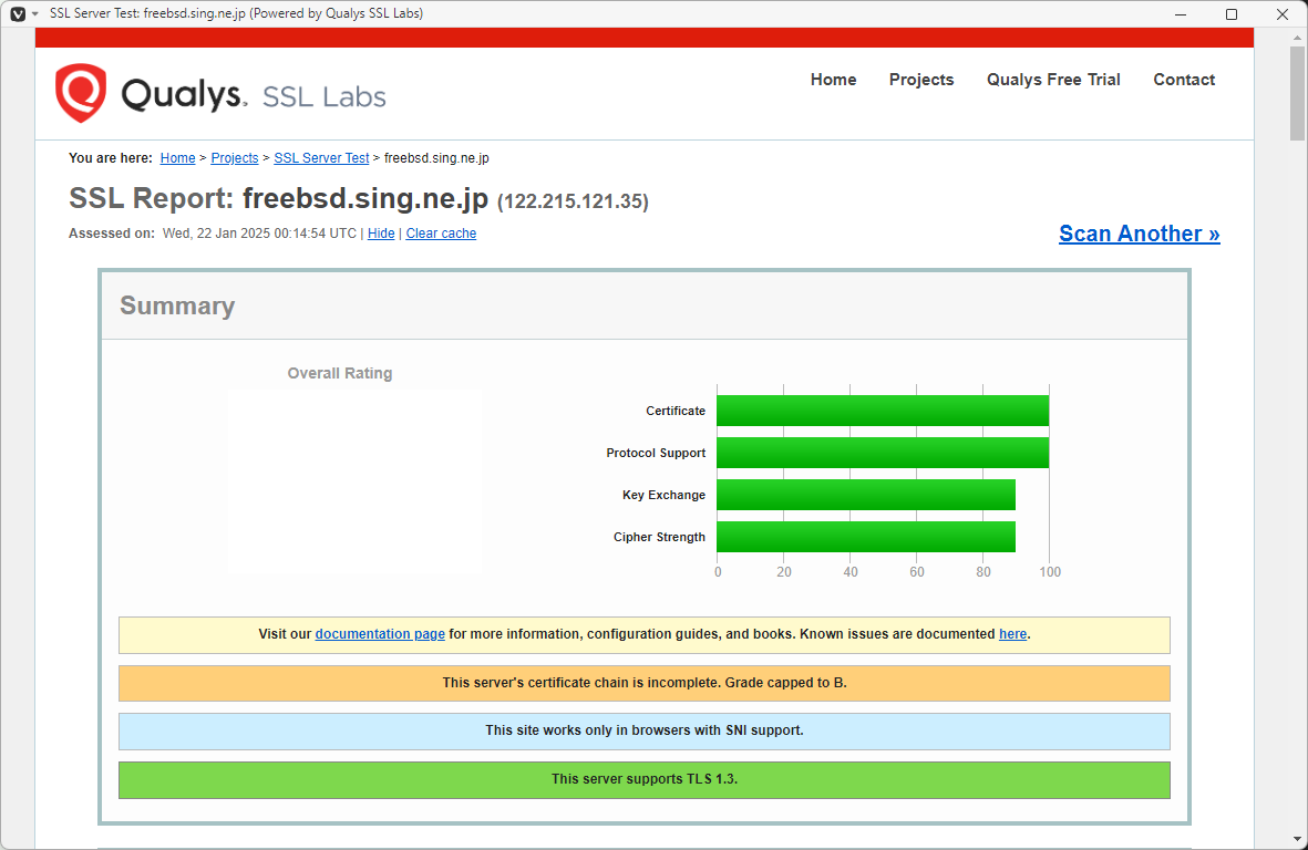 「SSL Server Test (Powered by Qualys SSL Labs)」