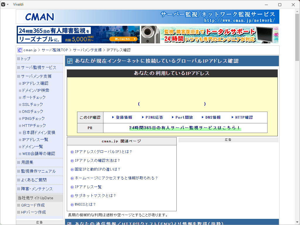 ネットワークサービス - お役立ちサイト - IPアドレス確認