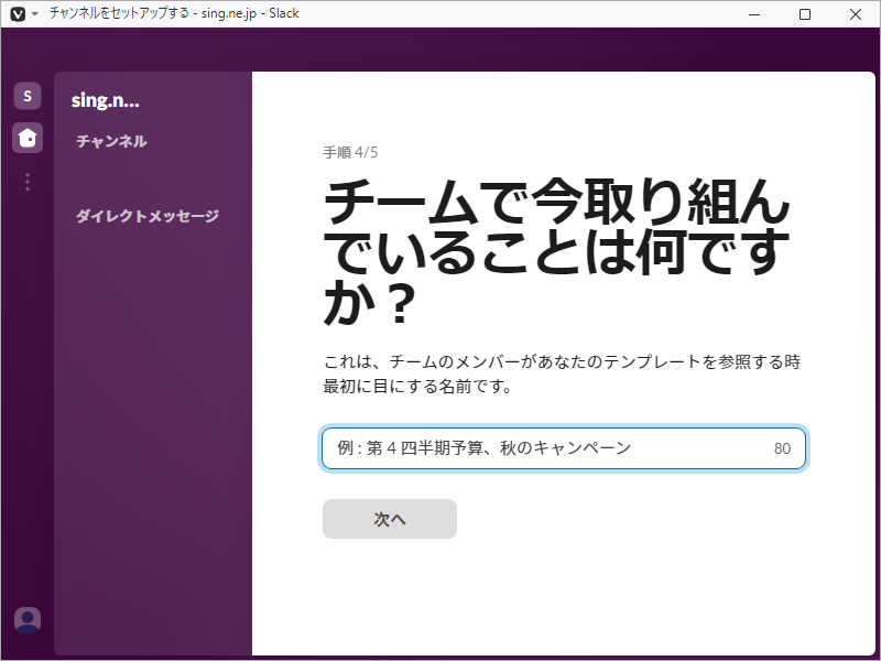 「Slack」のアプリケーションを「Windows」パソコンへインストールした際、ワークスペースを作成できそうだったのでやってみます。