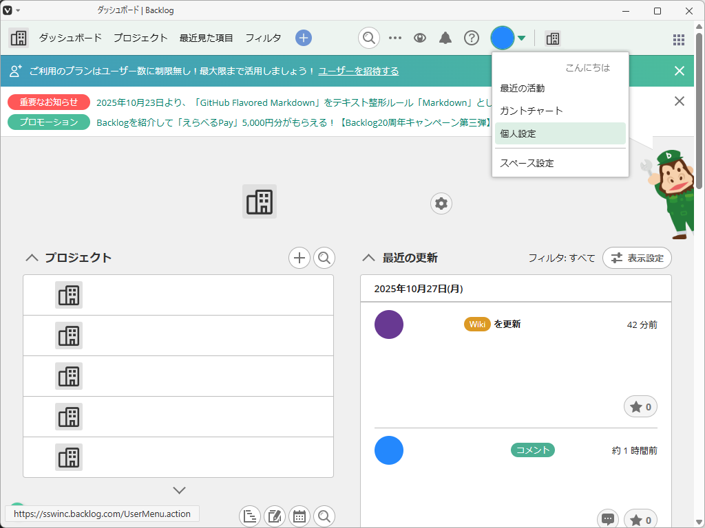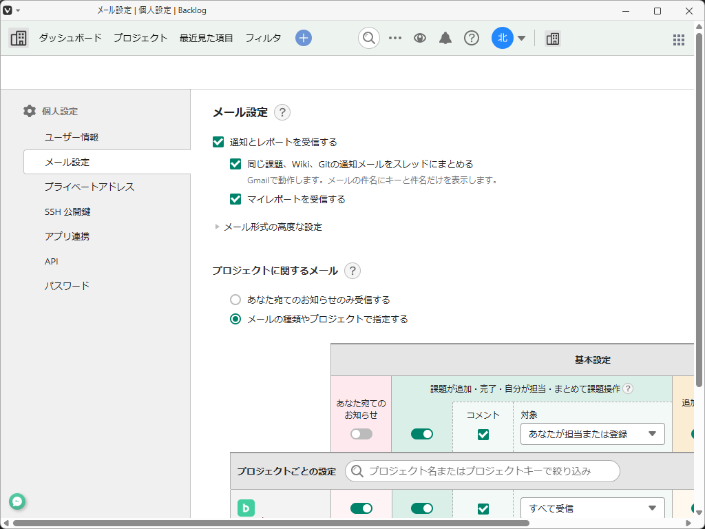 「Backlog」には、更新発生時に、メールを通知する機能がありますが。