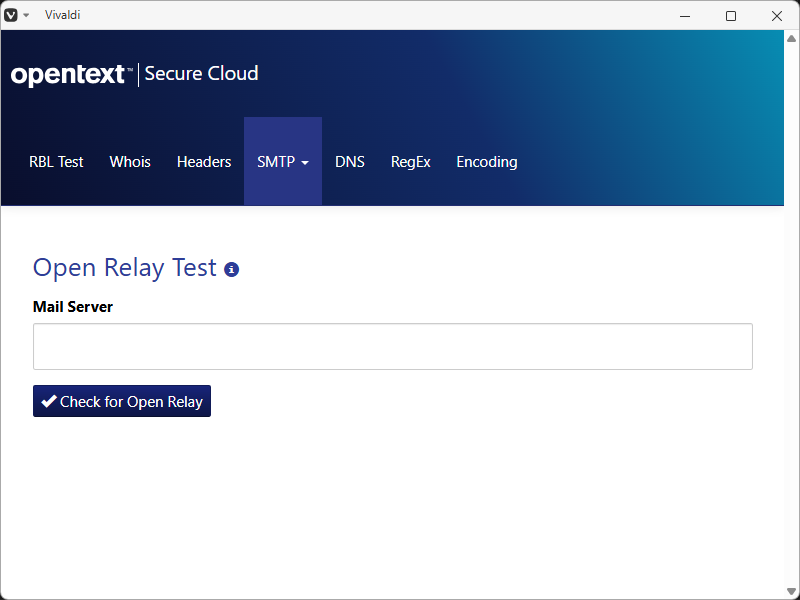 下記で、メールサーバのホスト名を入力して、「Check for Open Relay」