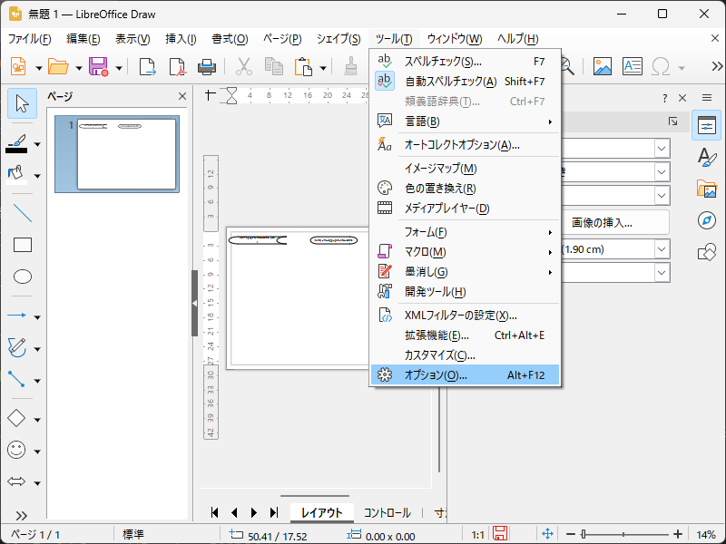 横アイコンをクリックすることで、グリッド線での位置合わせをする/しないを切り替えられます。 3. 設定 グリッド線の設定を行うには。 「ツール」→「オプション」