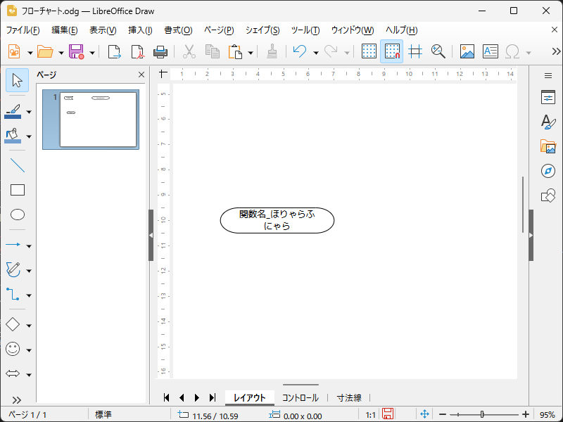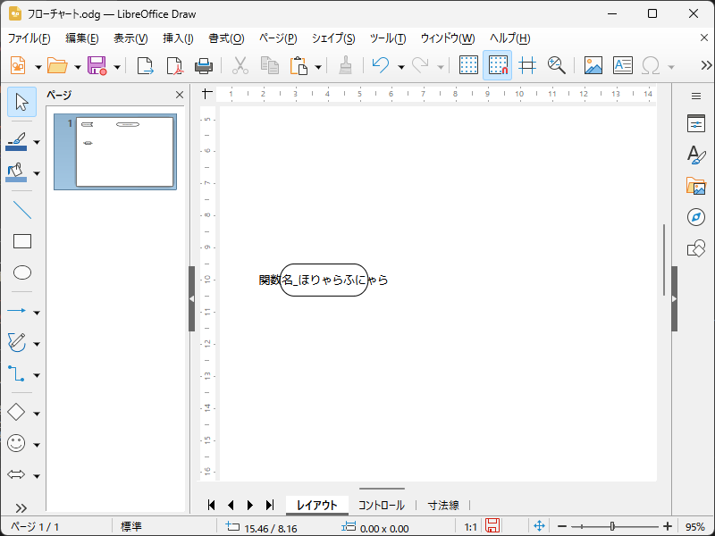 開始、終了の図形の場合、開始には、関数名あたりをいれますが・・・。