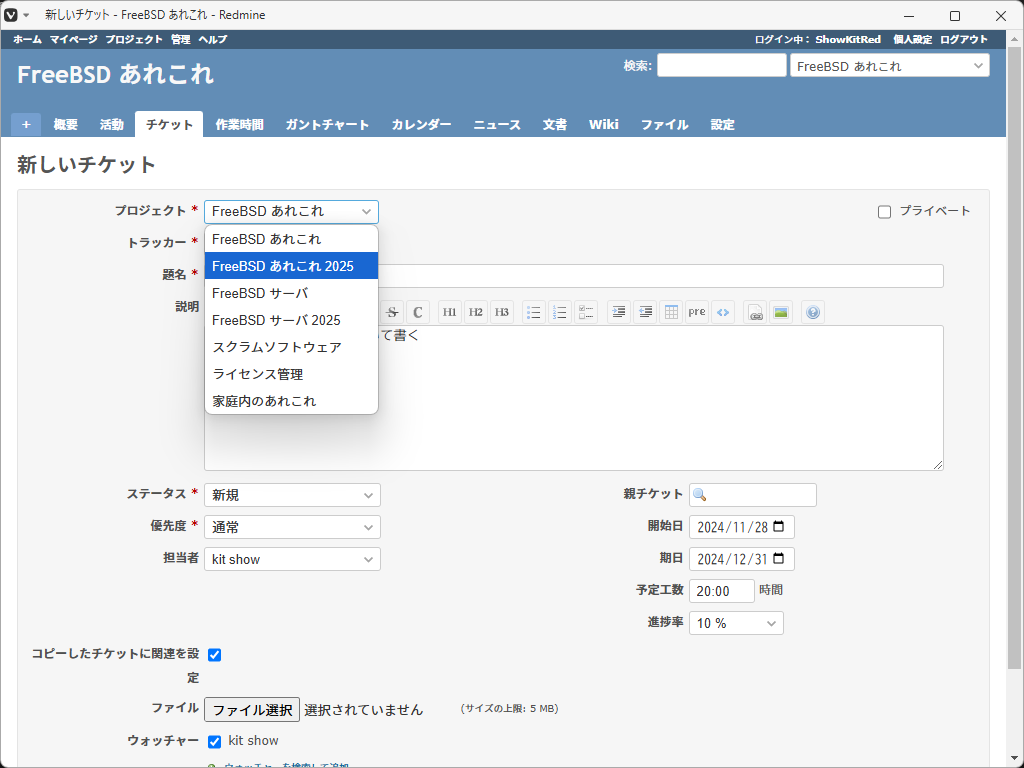 わたしは、「Redmine」のプロジェクトを年度別に分けています。