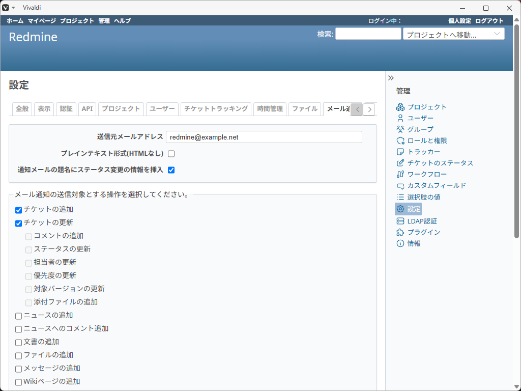 「メール通知のための configuration.yml の設定 — Redmine.JP」