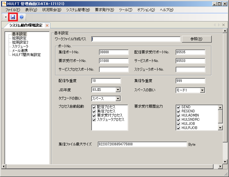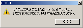 システム動作環境を保存したら、「HULFT」の再起動をうながすダイアログが表示されます。