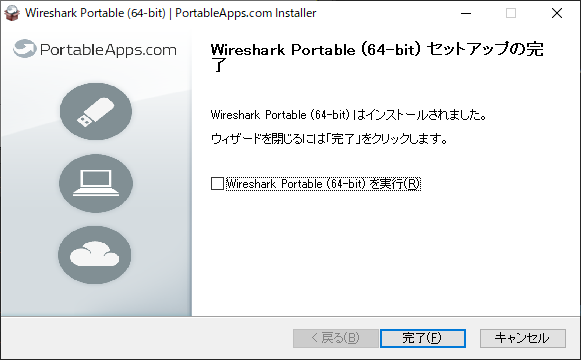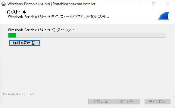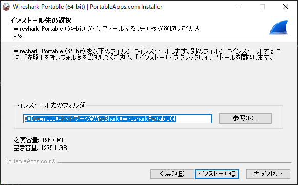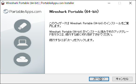 これは、「Windows」のポータブル版のインストーラ、「WiresharkPortable64_X.X.X.paf.exe」というファイル名のものをインストールする手順です。