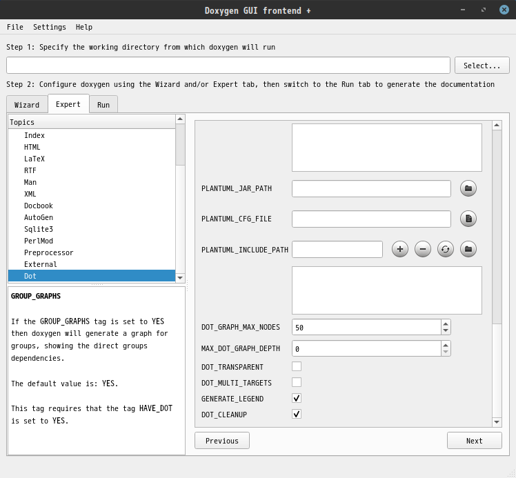 下部の 「MAX_DOT_GRAPH_DEPTH」 の数値を調整します。