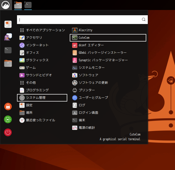 「スタート」→「システム管理」→「cutecom」で起動します。