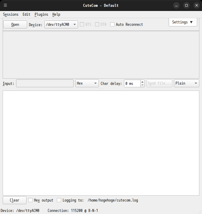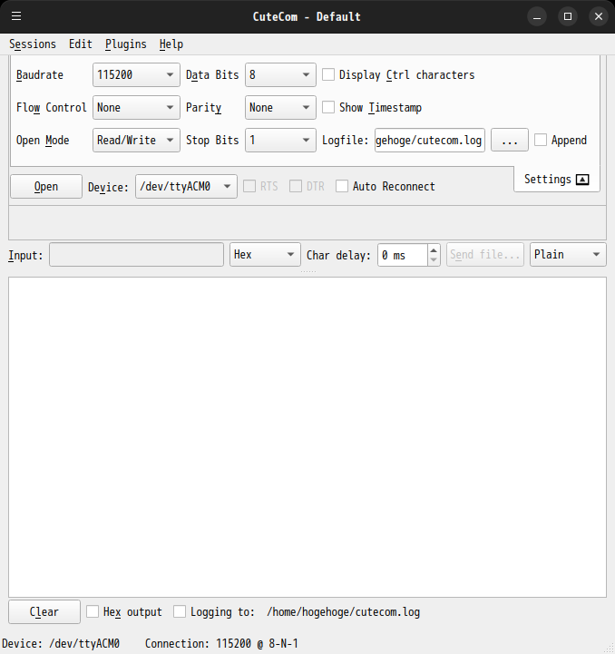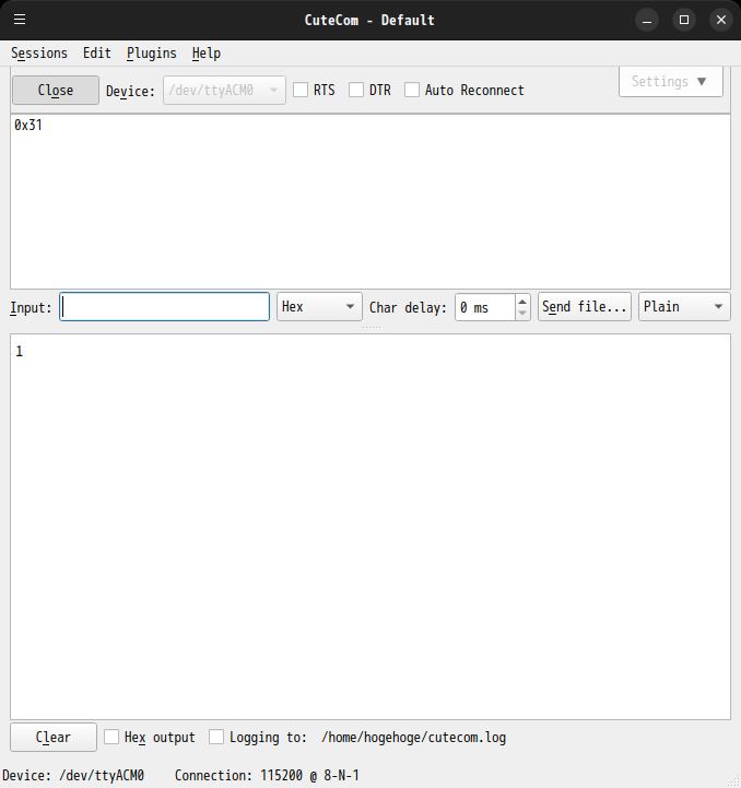 「Input」欄に、「0x..」の形式で、コードを入力して、Enter で、1バイト送信することができます。