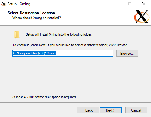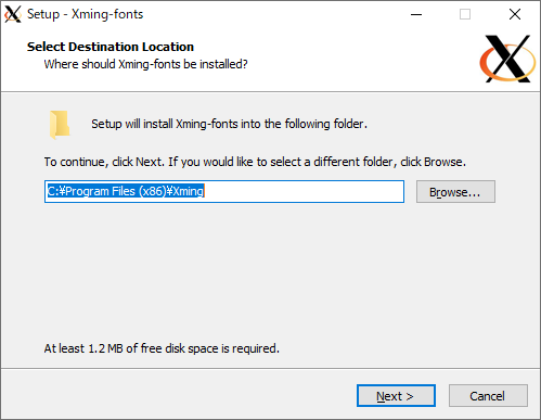 前ページでダウンロードした、「Xming」本体とフォントをインストールします。