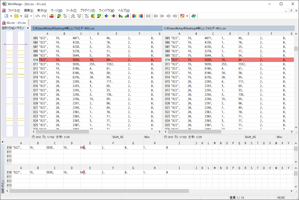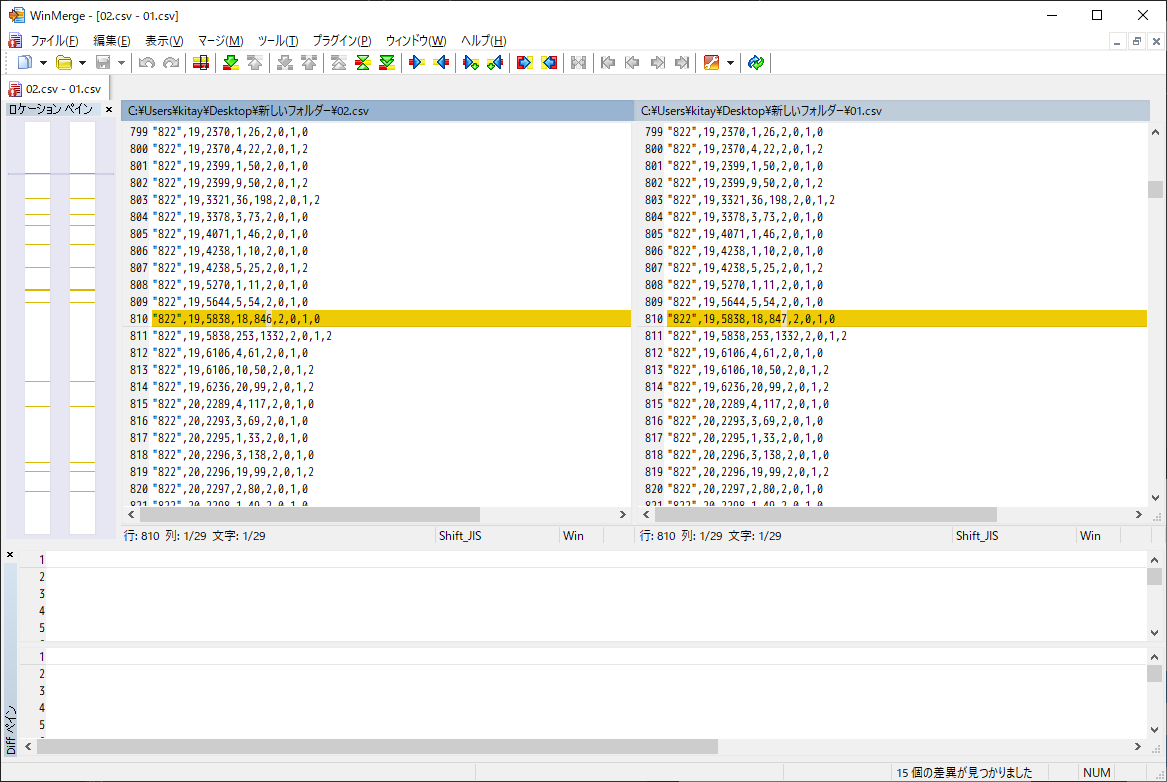 「.csv」を比較すると、わたしの設定では、こんな感じ。