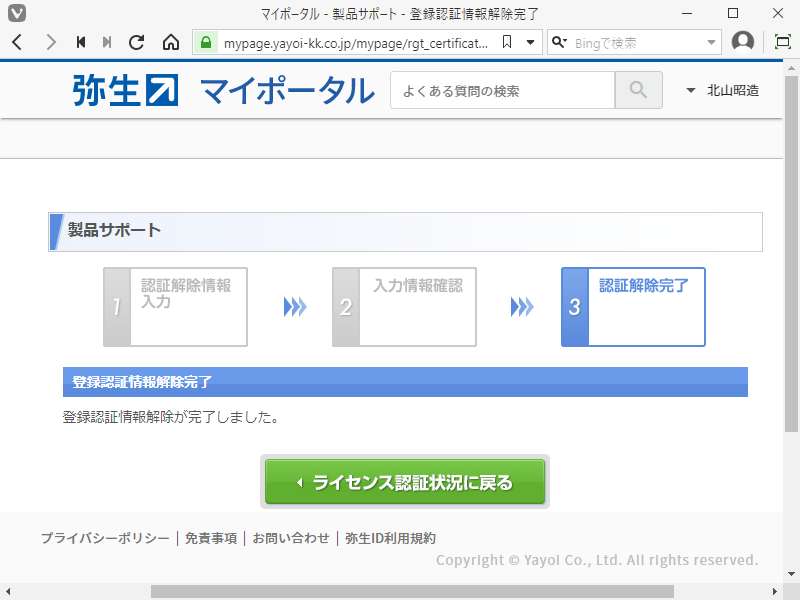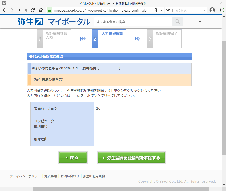 「弥生登録認証情報を解除する」