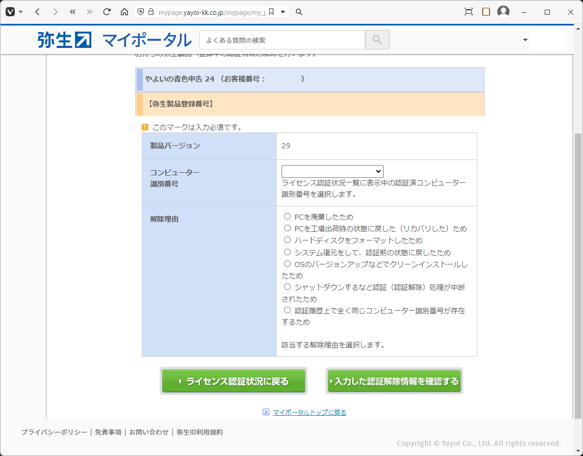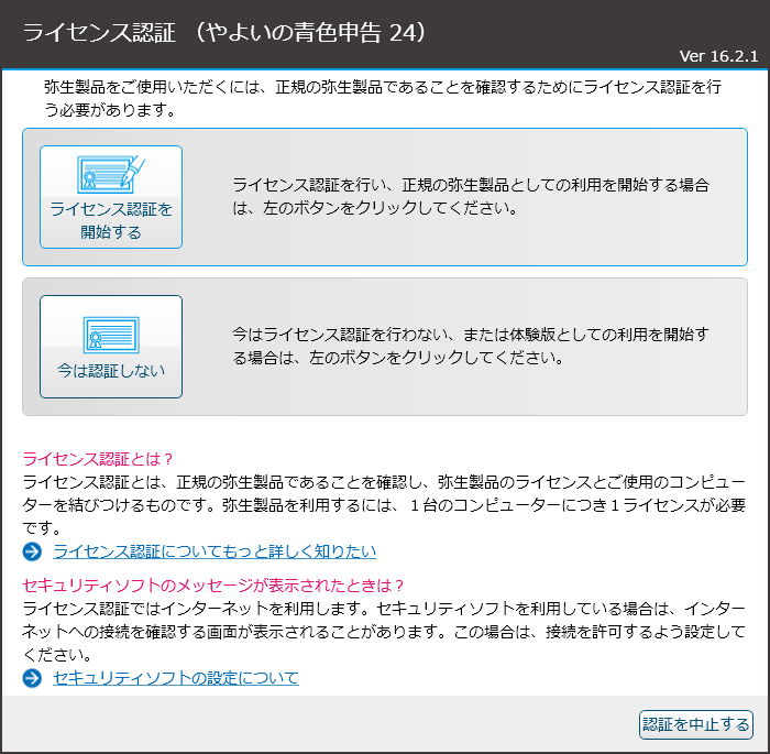 やよいの青色申告 - やよいの青色申告24 - ライセンス認証
