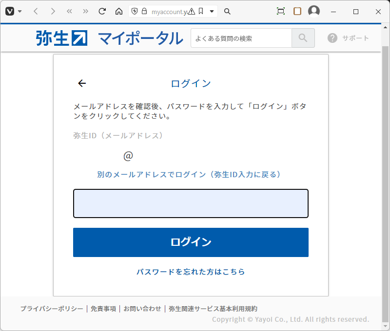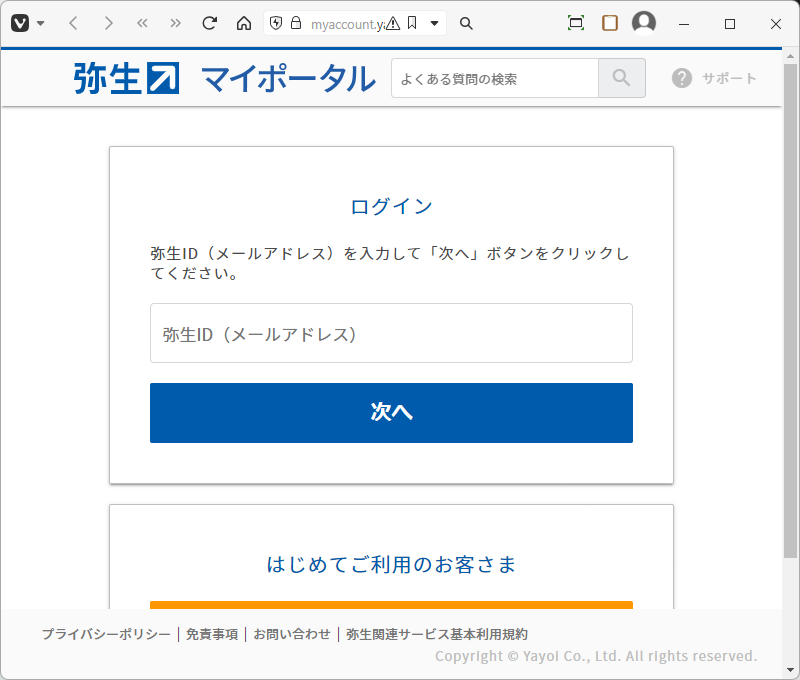 ここで、まず、中央より上、右の「マイポータル(Web)」