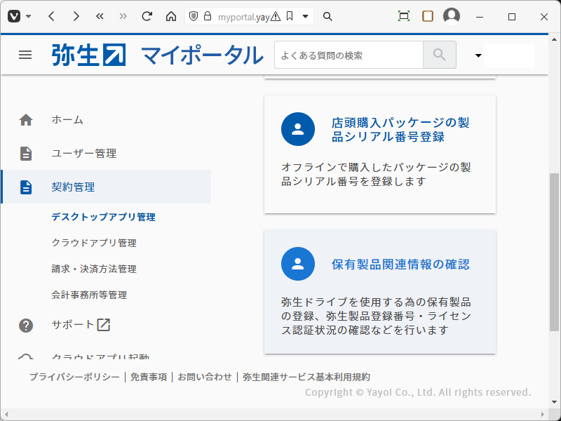 「契約管理」→「デスクトップアプリ管理」→「保有製品関連情報の管理」
