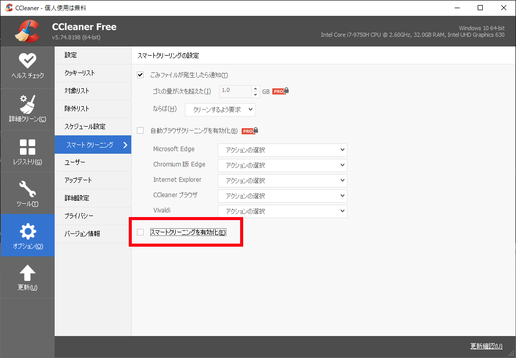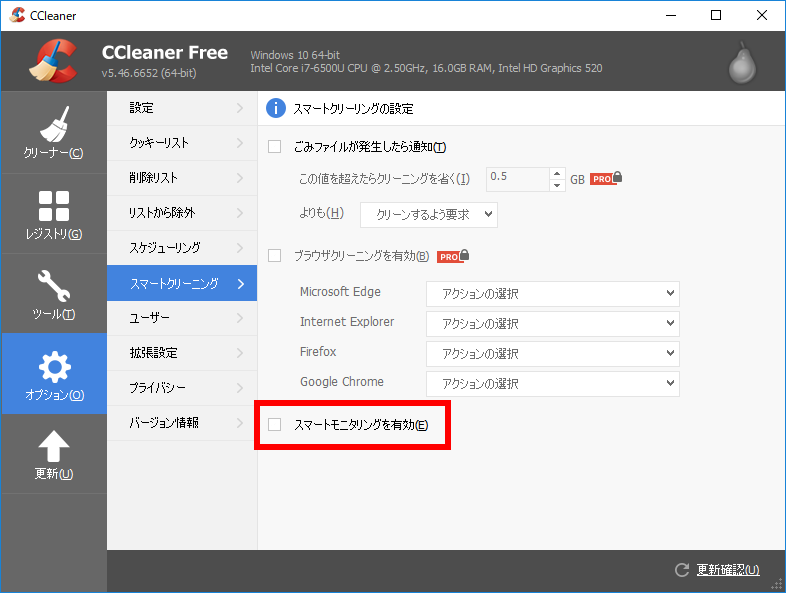 CCleaner - タスクトレイに常駐させない - 5.74 まで