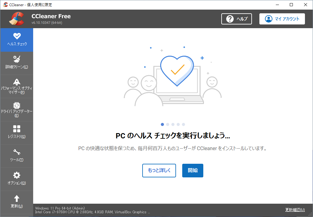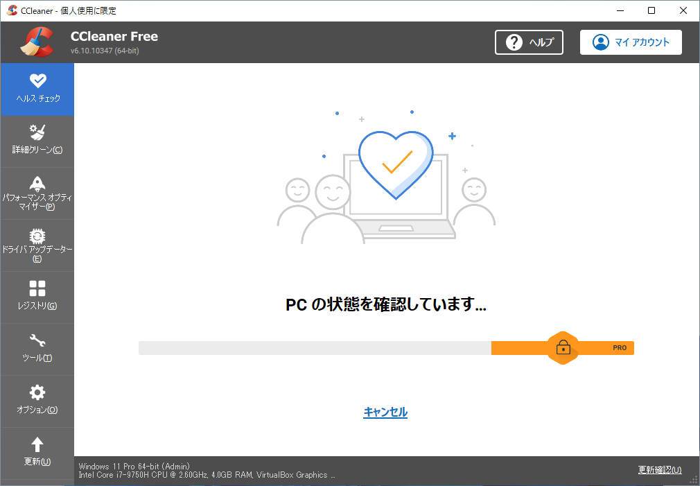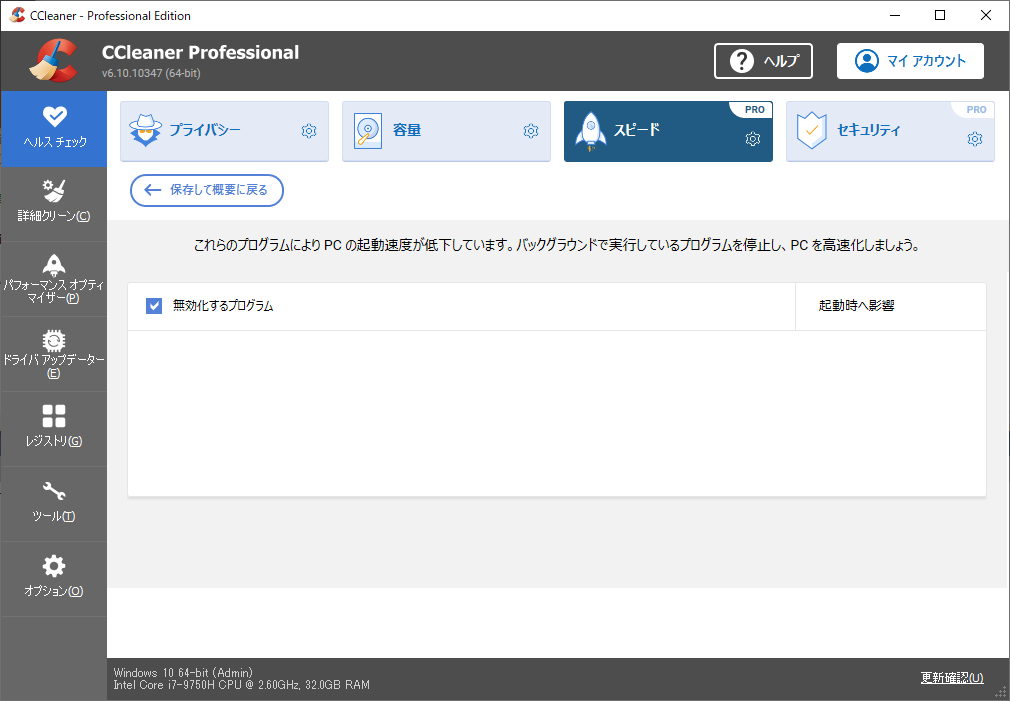「ヘルスチェック」タブを開いて