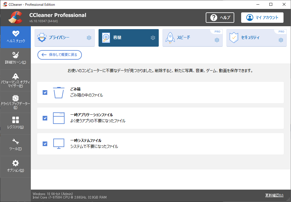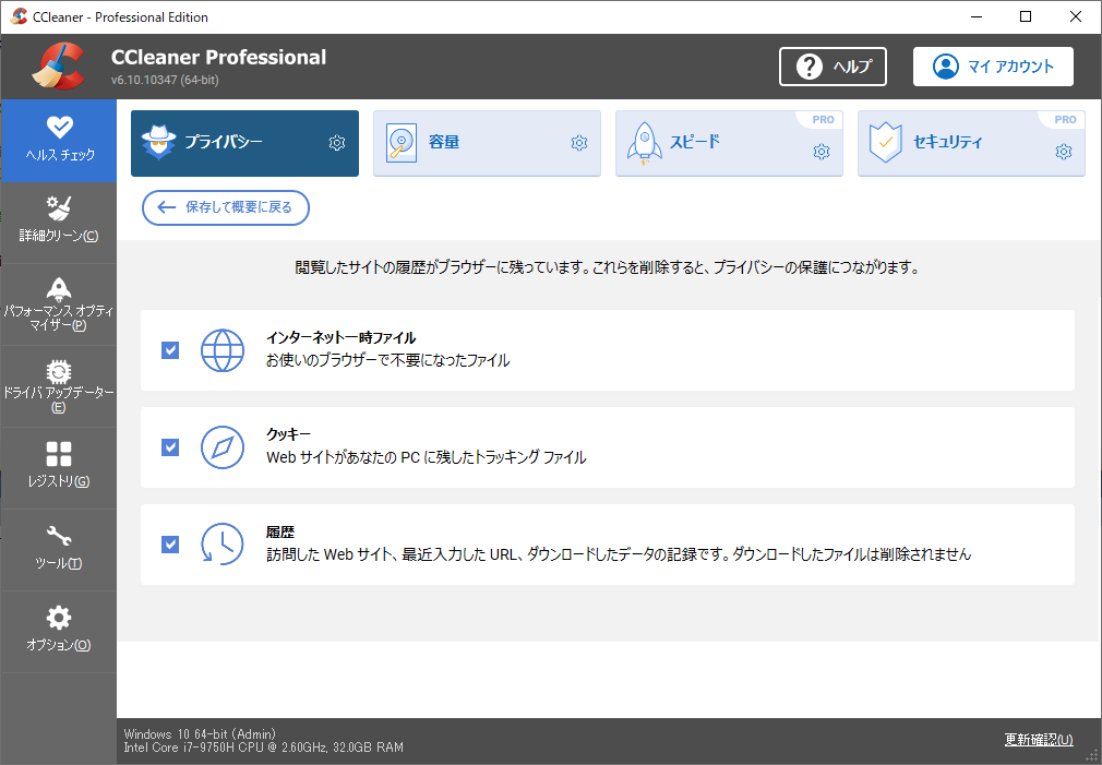 ヘルスチェックの結果から4つならんだボタンのどれかを押すと、以下の画面へ移行します。
