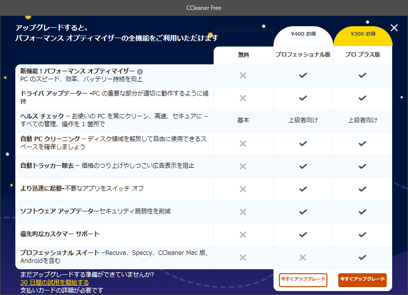 無償版で「スリーブ」を押すと、下記のダイアログが表示されます。