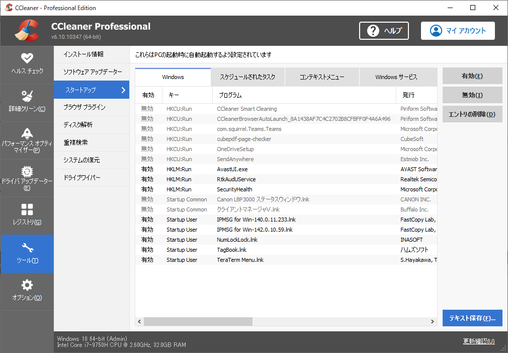 CCleaner - スタートアップマネージャ - 6.x