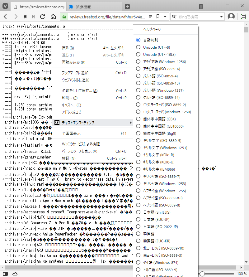 Vivaldi - 拡張機能 - テキストエンコーディング
