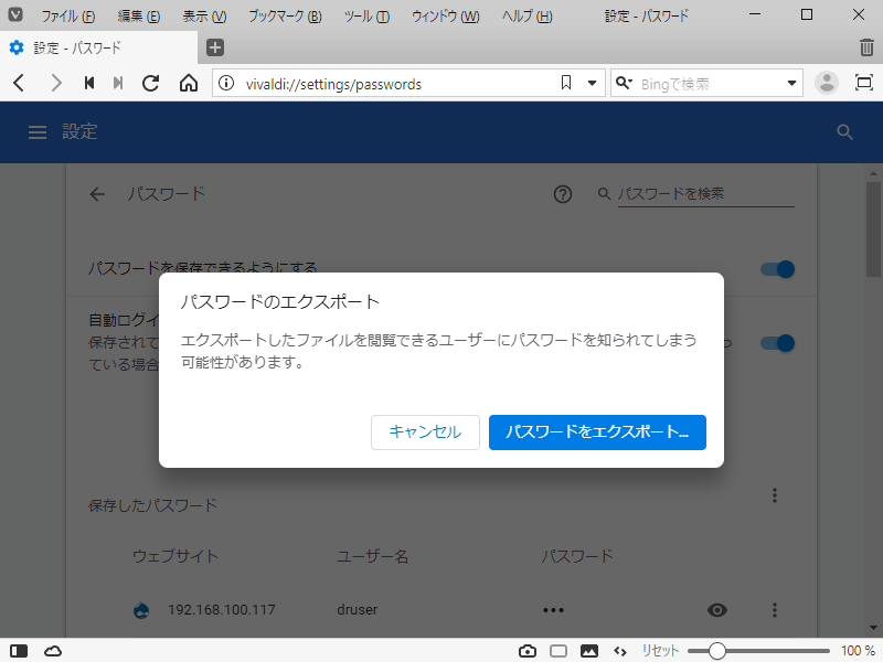 セキュリティ上の問題がありますので、パスワードをエクスポートしたら、ファイルは、慎重に扱う必要があります。
