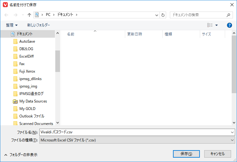 デフォルトのファイル名は「Vivaldi パスワード.csv」です。