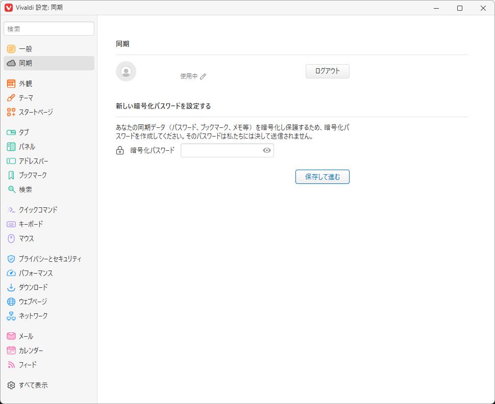(この暗号化パスワードを知られない限り、「Vivaldi」のチームを含めて、設定を盗まれることはないようです)