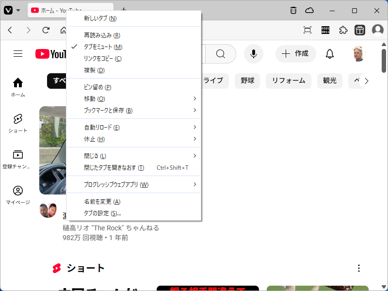 「Vivaldi」は、タブに対してミュートがかけられるんですね。