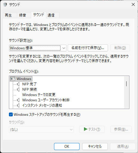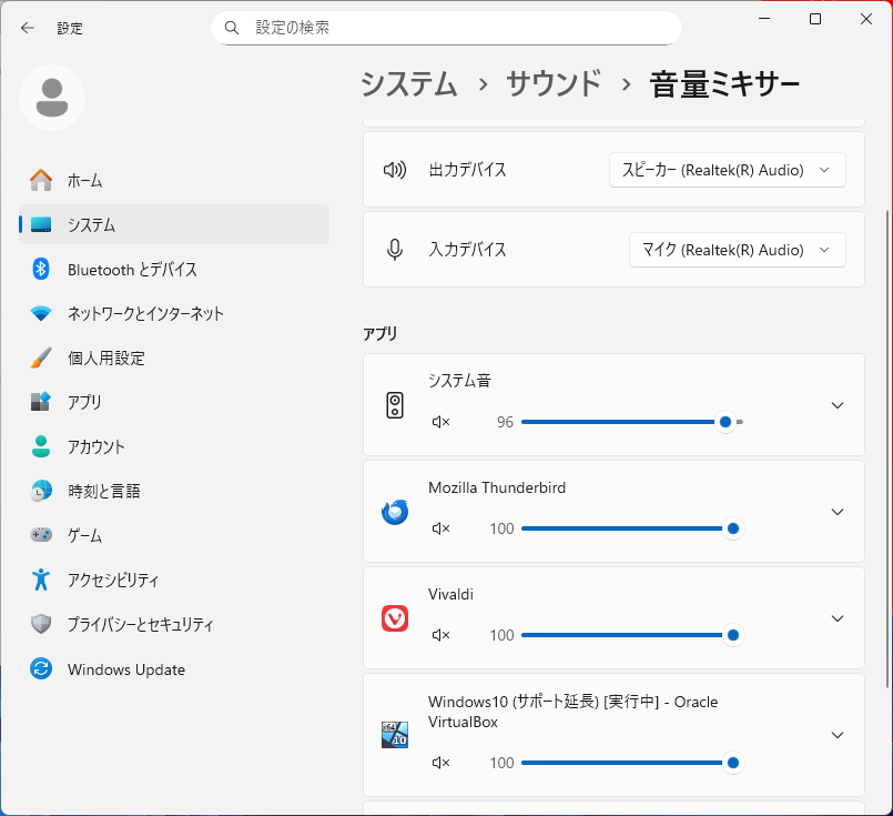 「システム」→「サウンド」→「音量ミキサー」