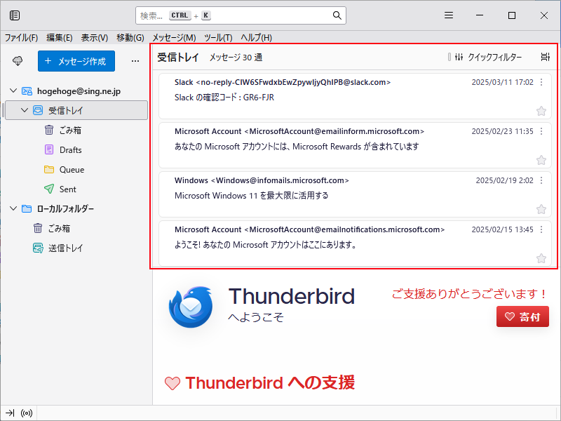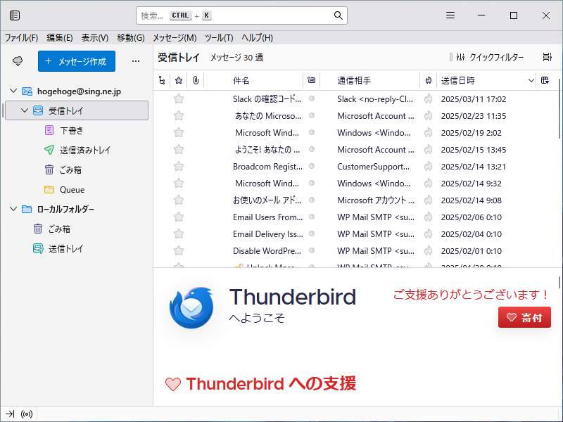 1. 概要 久々に、「Thunderbird」を新規インストールして、設定していたら、スレッドペインの表示が今までと違う。 バージョンは、「136.0」でした。 2. 状況 こんなの。