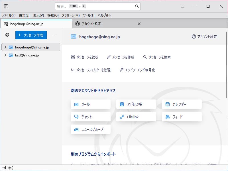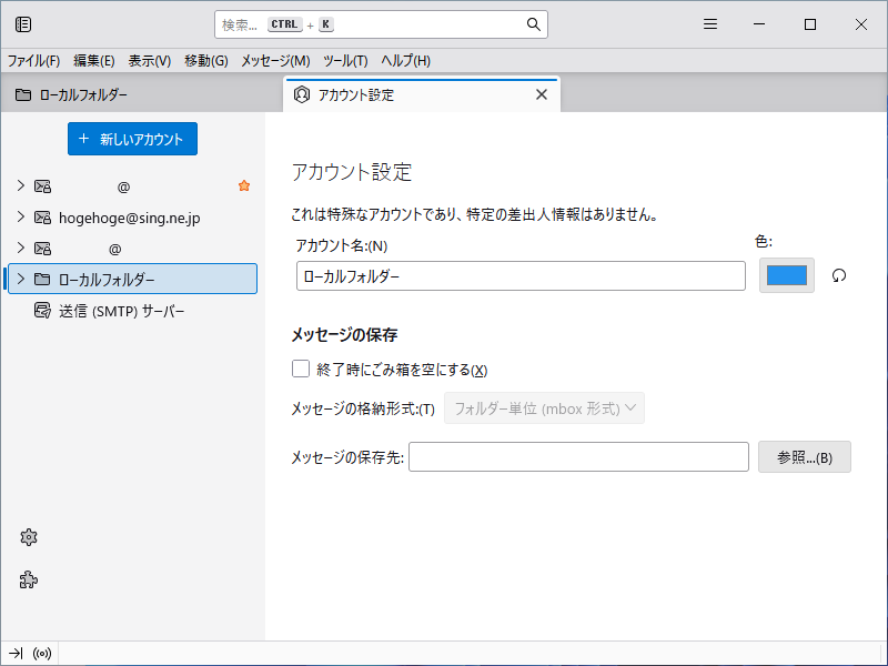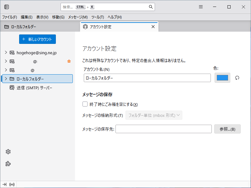 現在の「Thunderbird」ではアカウントごとにフォルダが作成されます。