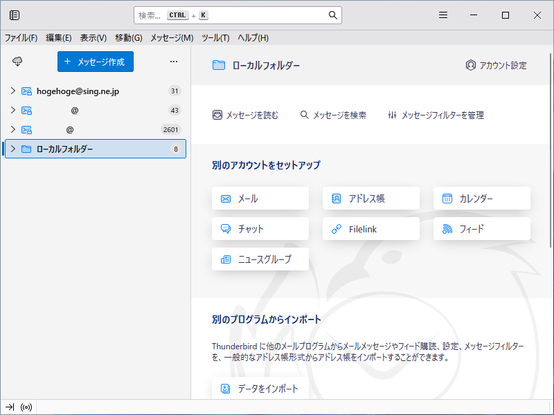 以下、「Thunderbird 140.0.1 (64 ビット)」での操作です。